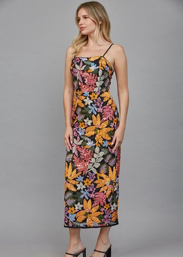 Floral Sequin Embroidered Midi Dress