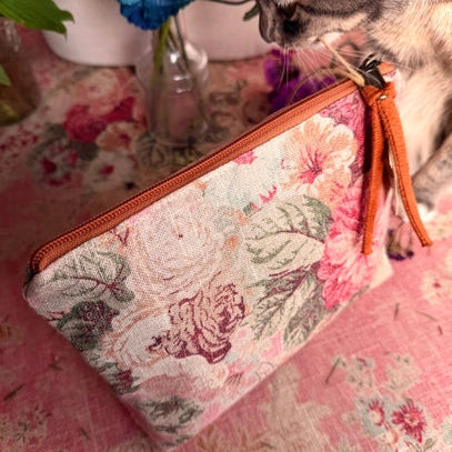 Secure your essentials with style and abundance! Never leave your essentials behind with the spacious Rosewood Accessories Pouch. This romantic pouch adds a touch of grace to any ensemble, showcasing a stunning assortment of delicate florals in warm tones. Handmade in the U.S.A., the Accessories Pouch is the ideal way to tote your keepsakes around in quirky, colorful fashion. This multi-functional pouch is perfect for neatly stashing makeup, needlearts supplies, charging cords, and more,