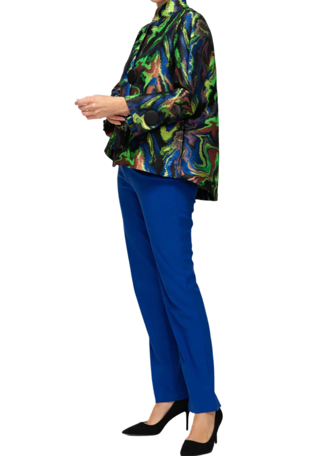Tailored to flatter, this sleek cobalt trouser adds a clean, modern finish to any ensemble. The slim leg elongates the silhouette, while the vibrant hue anchors the look with confidence and poise. Whether paired with the matching jacket or styled solo, it delivers a polished yet energetic presence.