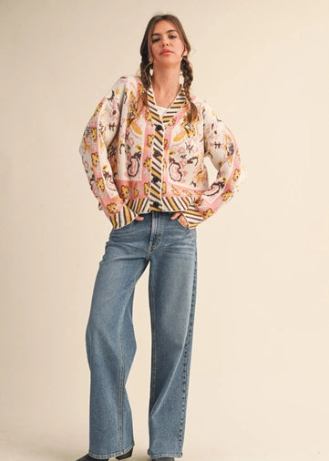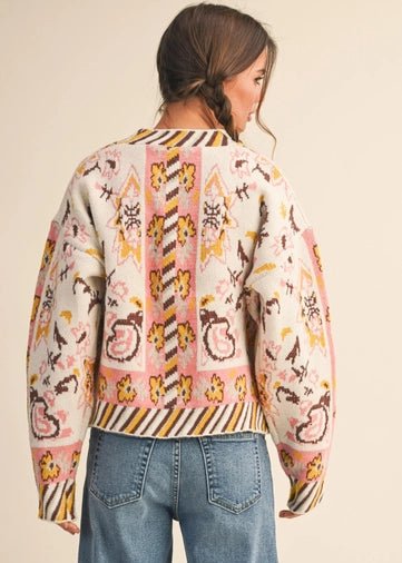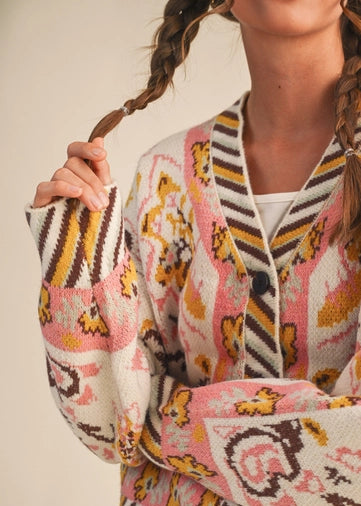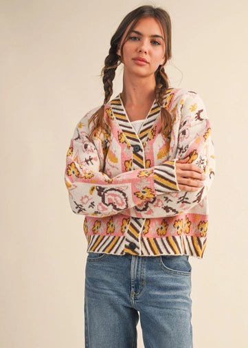 + Paisley knit sweater cardigan + V neck + Button down placket