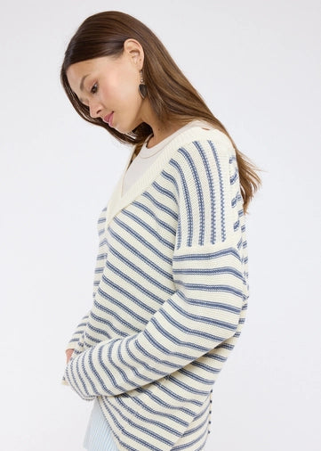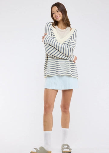 STRIPED DROP SHOULDER SWEATER - LONG SLEEVE, V NECK, EASY, COMFY, RELAXED, CASUAL, EVERYDAY, SUMMER, SPRING