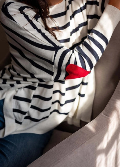What's your love language? Our Amour sweater says love best with darling little heart appliqués on the sleeves that spread the message to all who see her. With loose shoulders and signature side slits that move with you, Amour goes where you go—with lots of love and a sophisticated flair of charm and joie de vivre. This faithful travel sweater is your keeper for all seasons because—let’s face it—love is always in style.
