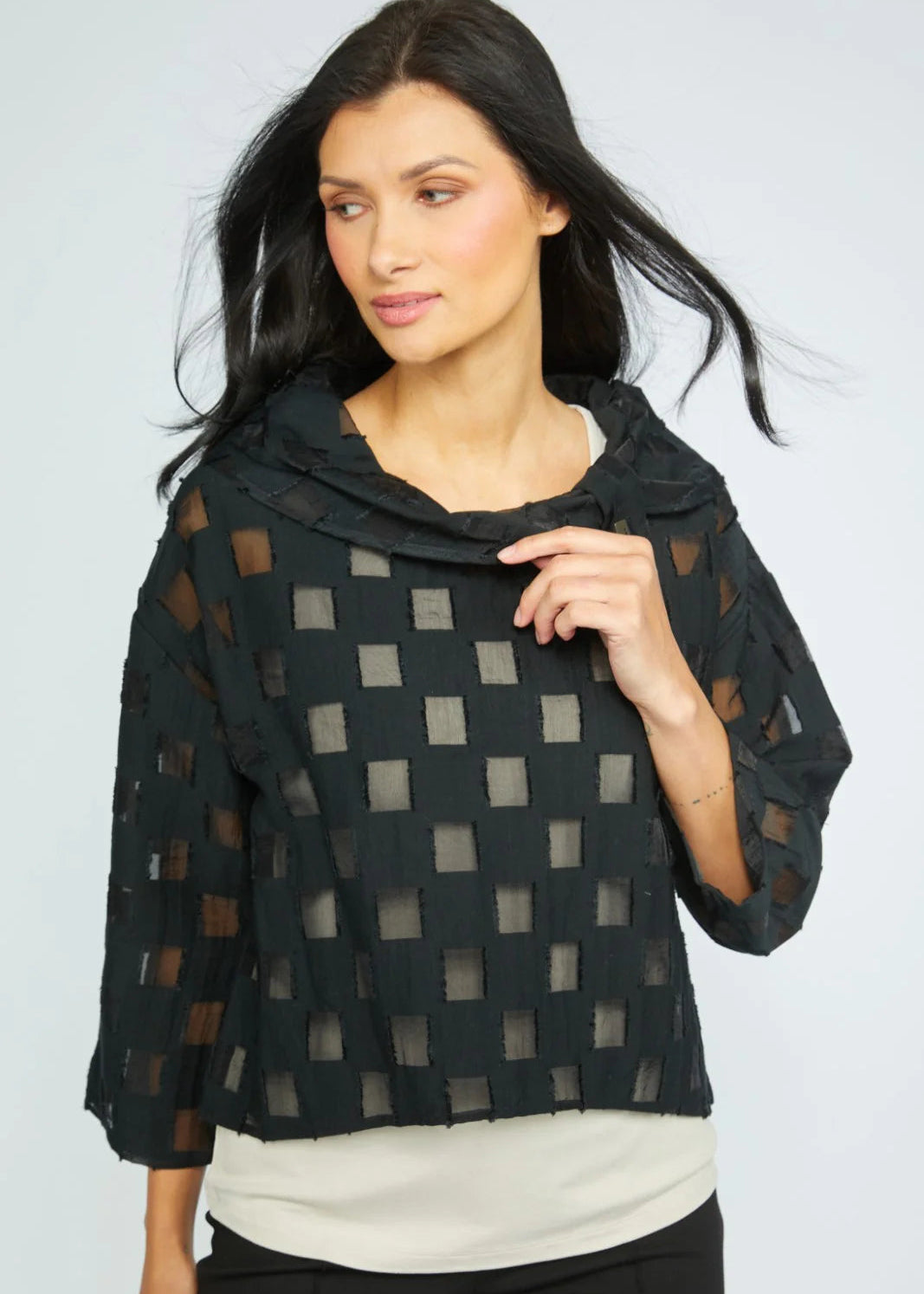 The Outside The Box Topper, is a lightweight layering piece, crafted in a semi-transparent fabrication. this style has a boxy fit with gorgeous drape which will elevate your look.