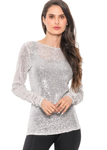 Silver Sequin Mesh Top