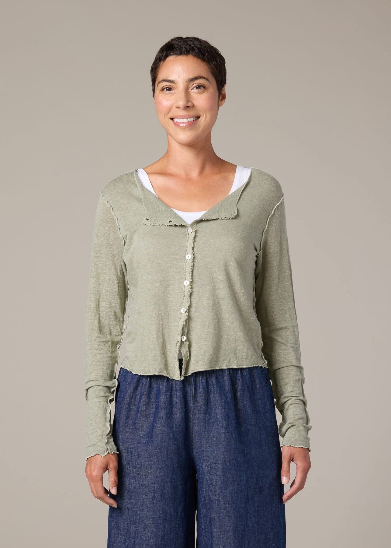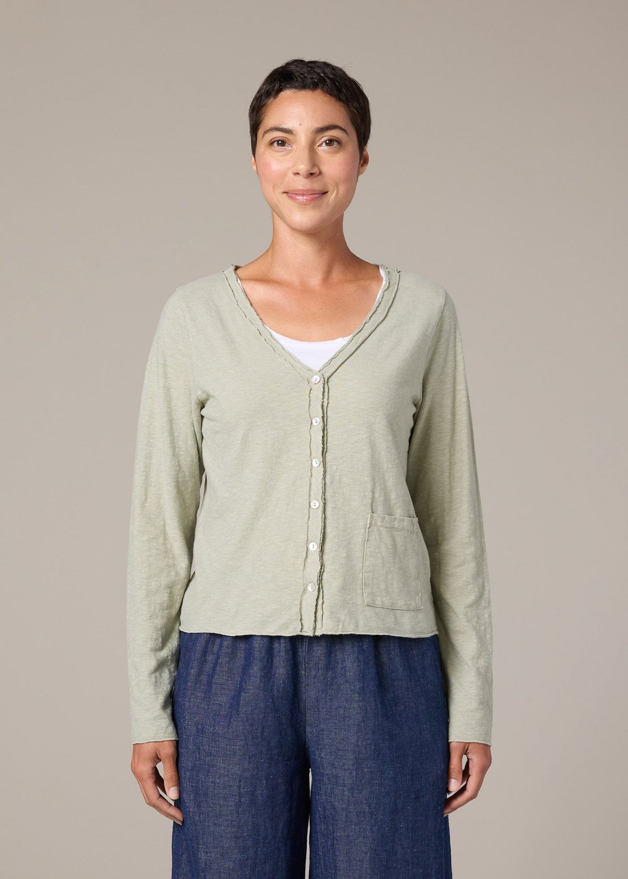 Balsam Green Crop Pocket Cardigan